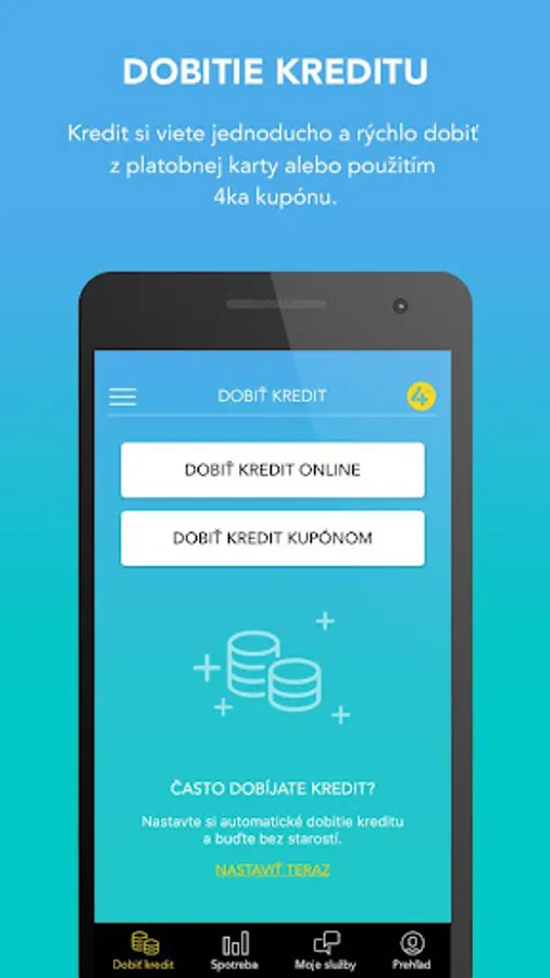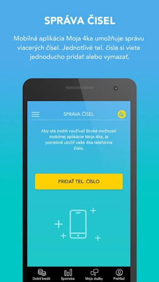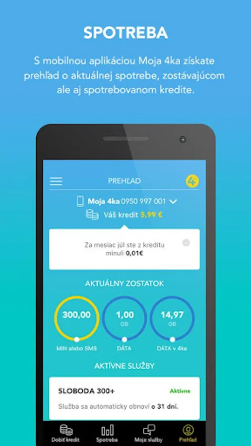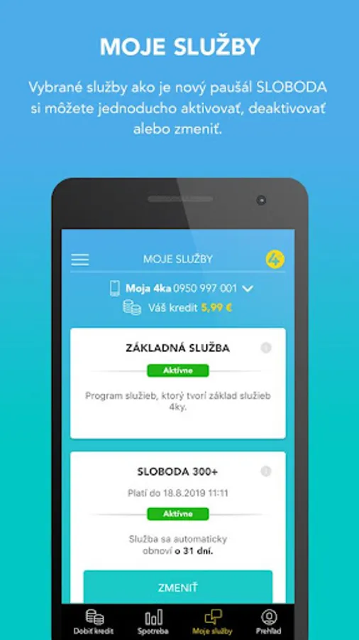 With the Moja 4ka mobile app, you can access your up-to-date consumption and access to your minutes, SMS and data balances instantly. You can easily activate, deactivate or change selected services. With the option to save a credit card, you can keep your payment for services or automatic credit recharge on your credit card.