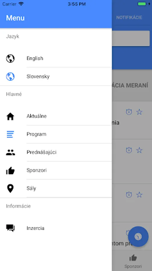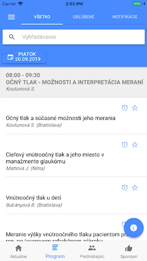 The program is structured according to the time schedule, the individual halls and the speakers / chairmen that can be searched for. You can create your own program using the "Favorites" tab. Using the "Notifications" tab it is possible to add notifications for individual lectures.