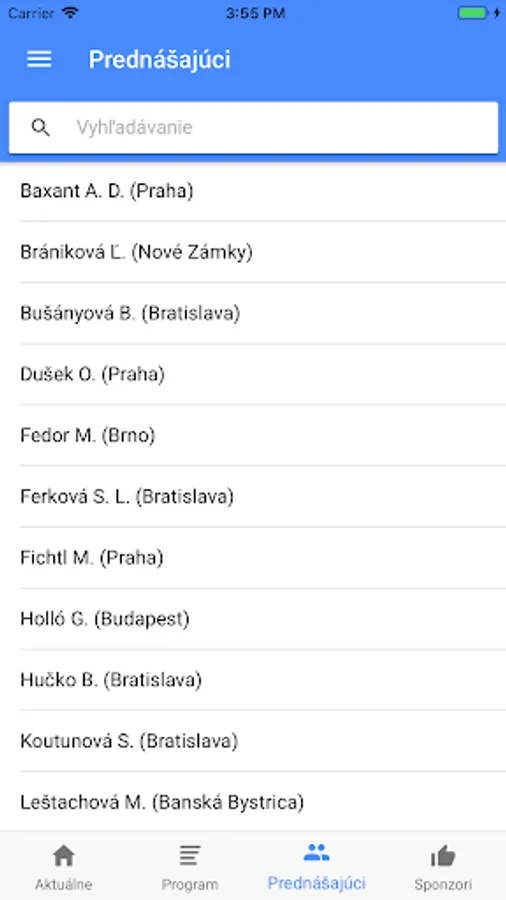 The application also contains a list of lecturers in which it is possible to search, a list of sponsors, a plan of lecture halls and exhibitors as well as a list of abstracts that will be presented at the congress.
