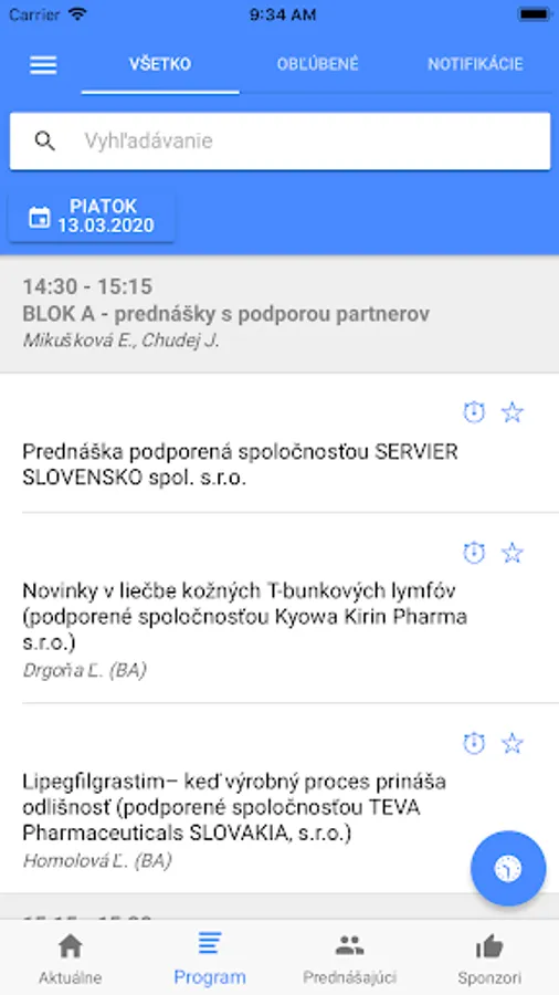 The application also contains a list of lecturers in which it is possible to search, a list of sponsors as well as a list of abstracts that will be presented at the congress.