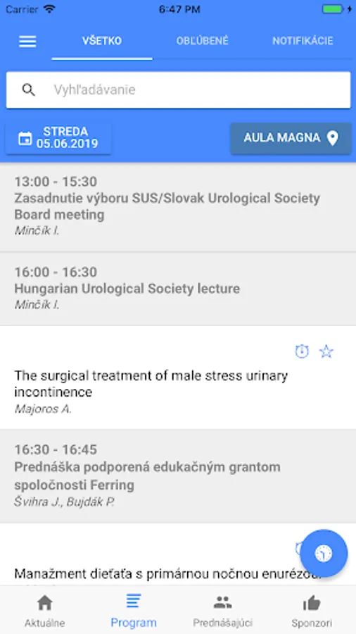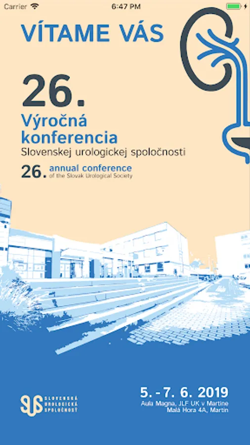 Professional program of the congress "26th Annual Conference of the Slovak Urological Society" which takes place from 5 to 7 June at Aule Magna JLF UK in Martin.