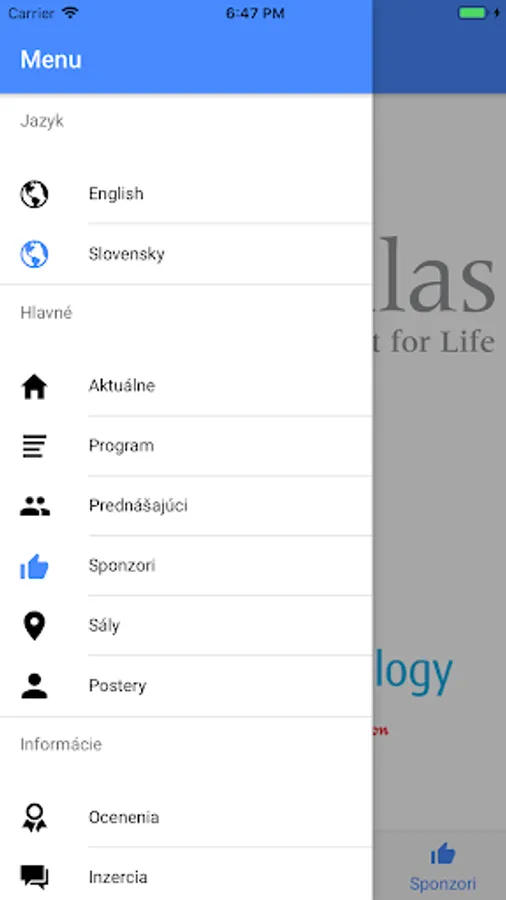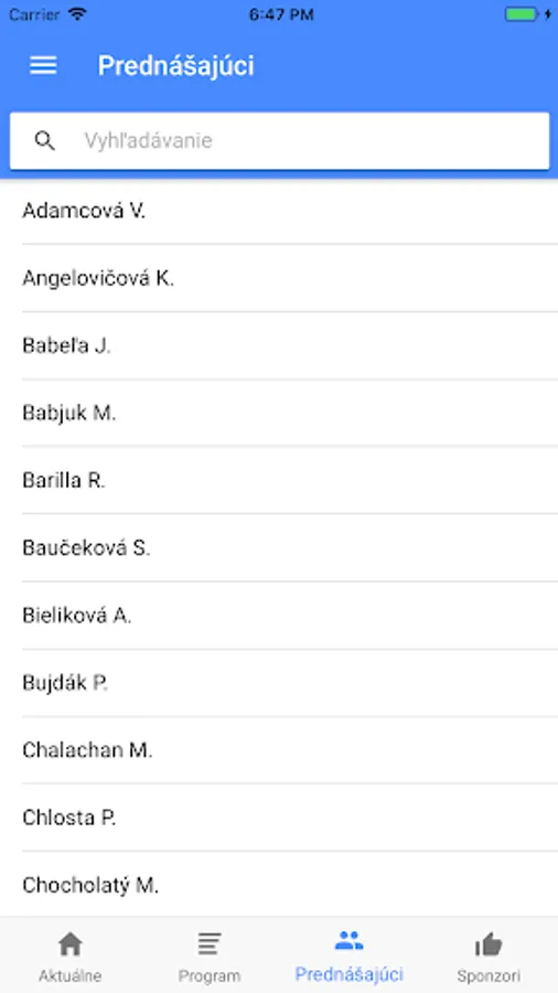 The application also includes a list of speakers in which it is possible to search, a list of sponsors as well as a list of abstracts and posters that will be released at the congress.