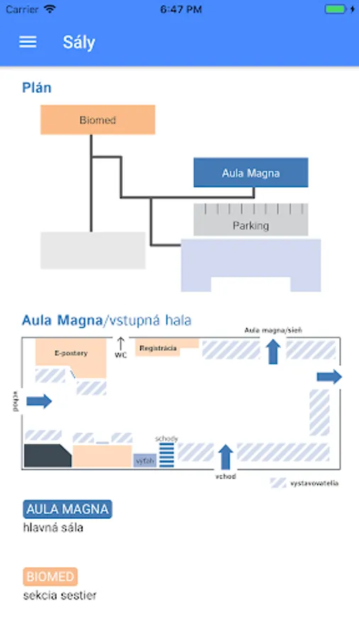 The program is structured according to the time course, the individual halls and the lecturers, which can be found. With the "Favorite" tab you can create your own program. Using the "Notifications" tab, you can add notifications for individual lectures.