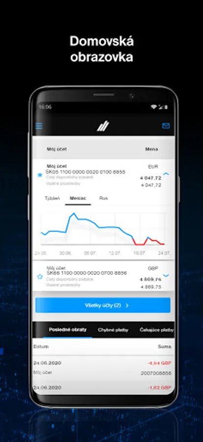 The mobile application is intended especially for clients with activated Business BankingTB services. The application provides the same functionality as the desktop version of Business BankingTB.