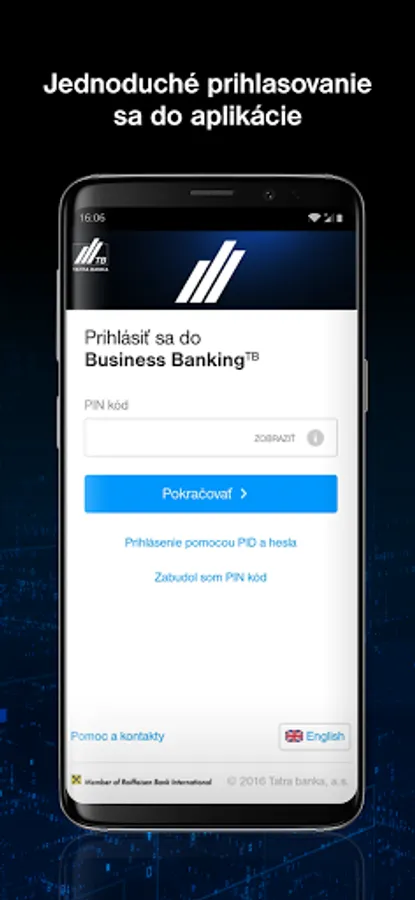 The Business BankingTB mobile application is available in two language versions: Slovak and English.