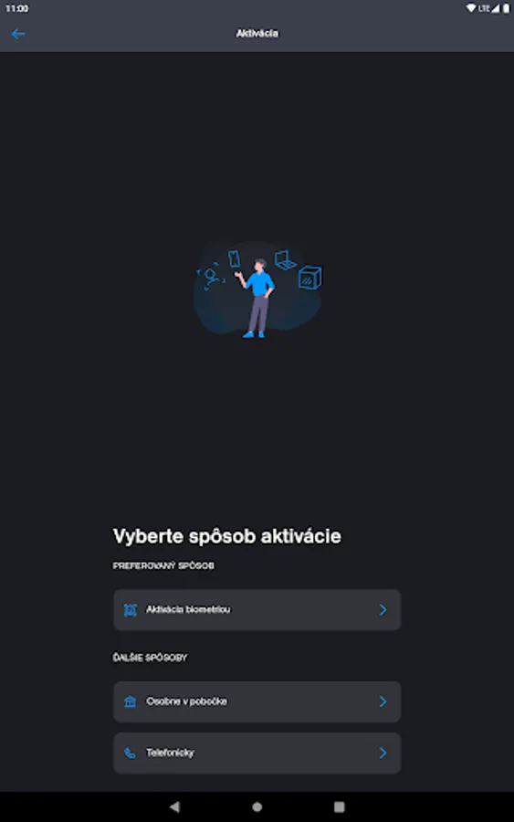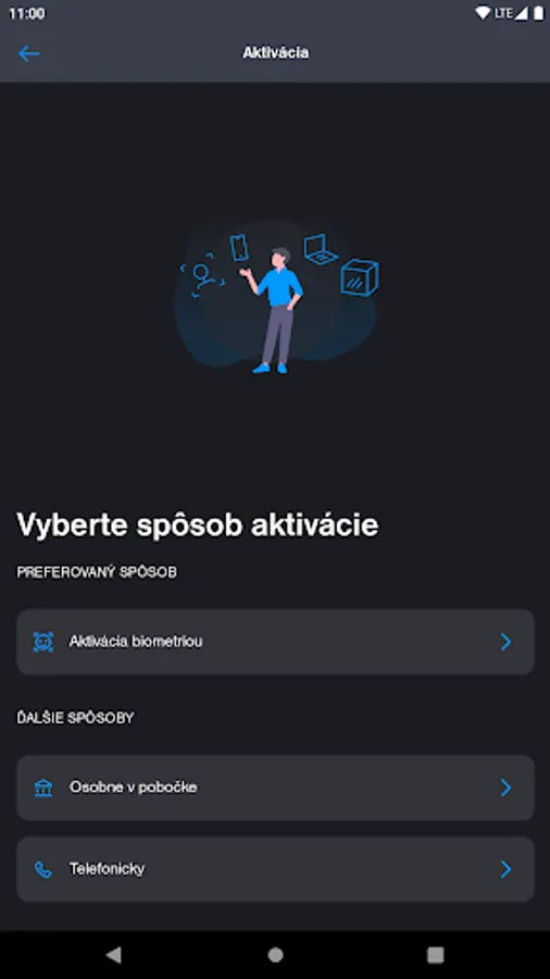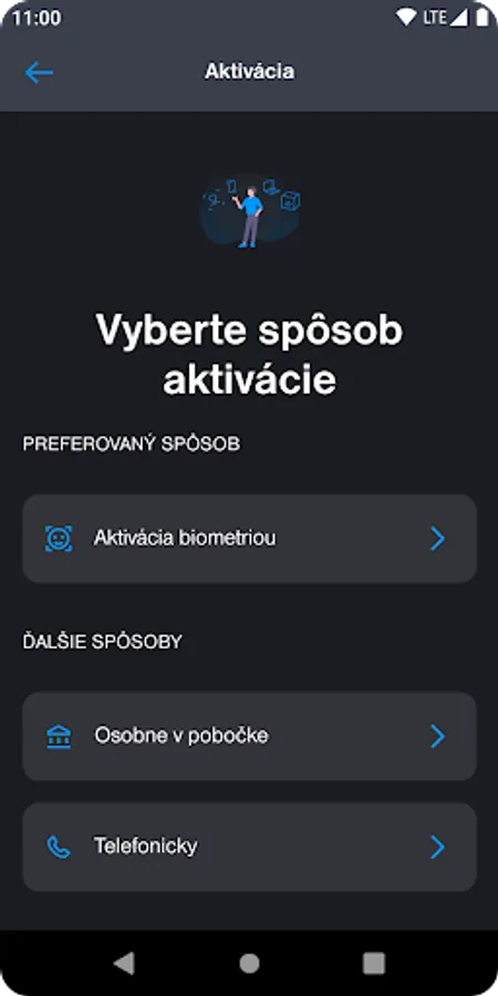 - Directly in the application - using facial biometrics. For activation, you need PID - personal identification number, a valid Slovak ID card, an SMS code sent during activation to your profile phone number, and a scan of your face.