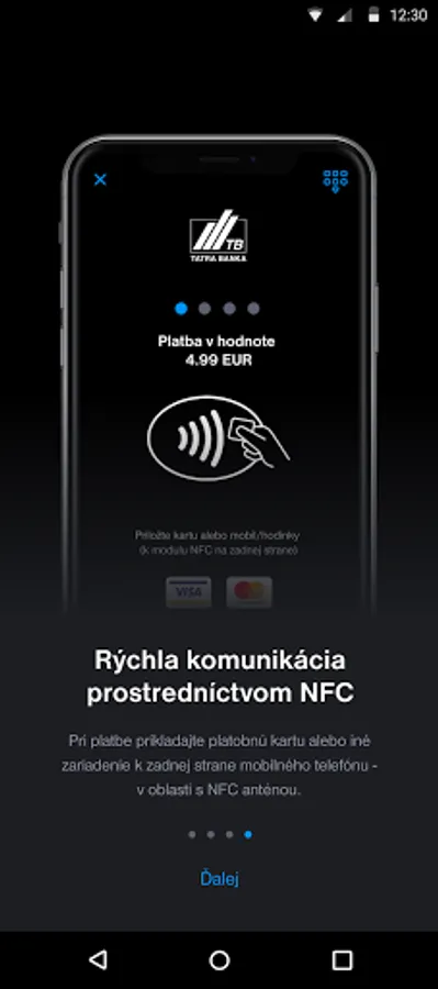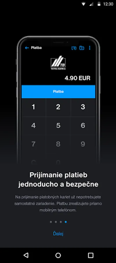 Turn your mobile phone into a real payment terminal and receive payments to it easily and quickly. You can have the Tatra banka POS application installed directly on your mobile phone/device and use it whenever and wherever you need to receive payment.