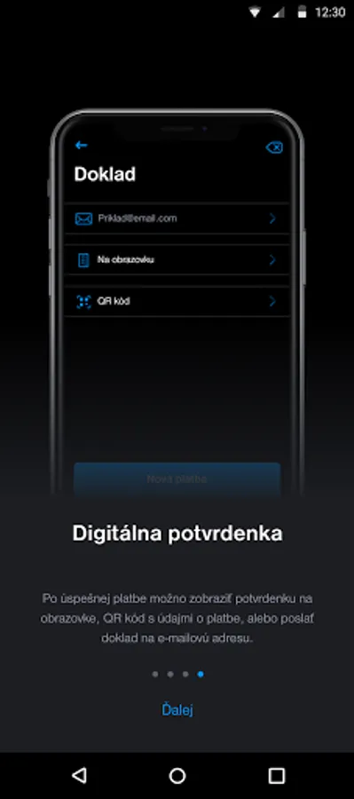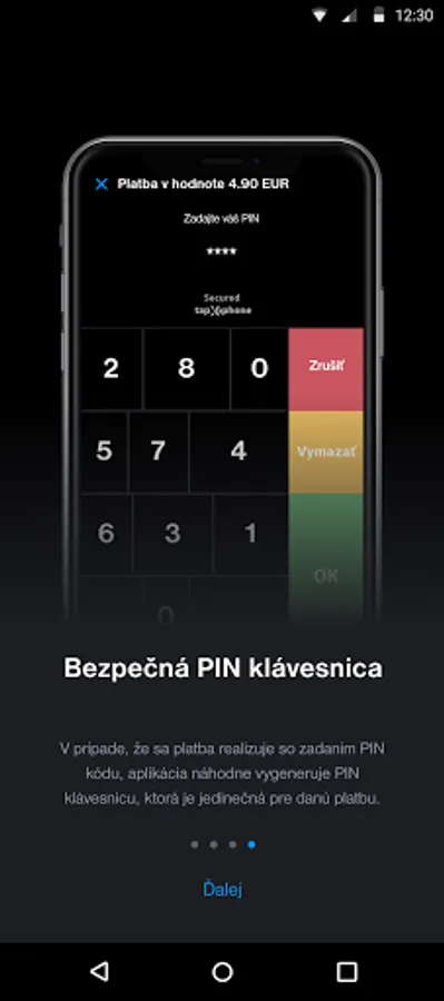 If a PIN is required for payment, the application will display a special screen with a secure variable keypad for entering the PIN. After entering the PIN code, the paying customer receives a confirmation of payment by e-mail or is displayed on the screen either as text or in the form of a QR code.