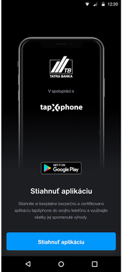 To use the application, it is necessary to submit an application and sign an agreement on accepting payment cards in Tatra banka. The bank will then email you the initialization tools. After initialization, you can use this service without restrictions and terminate its operation free of charge at any time.
