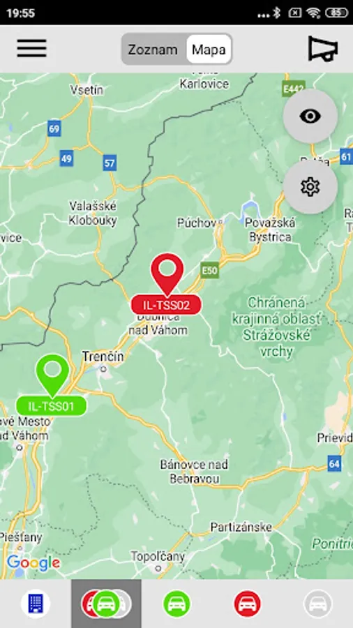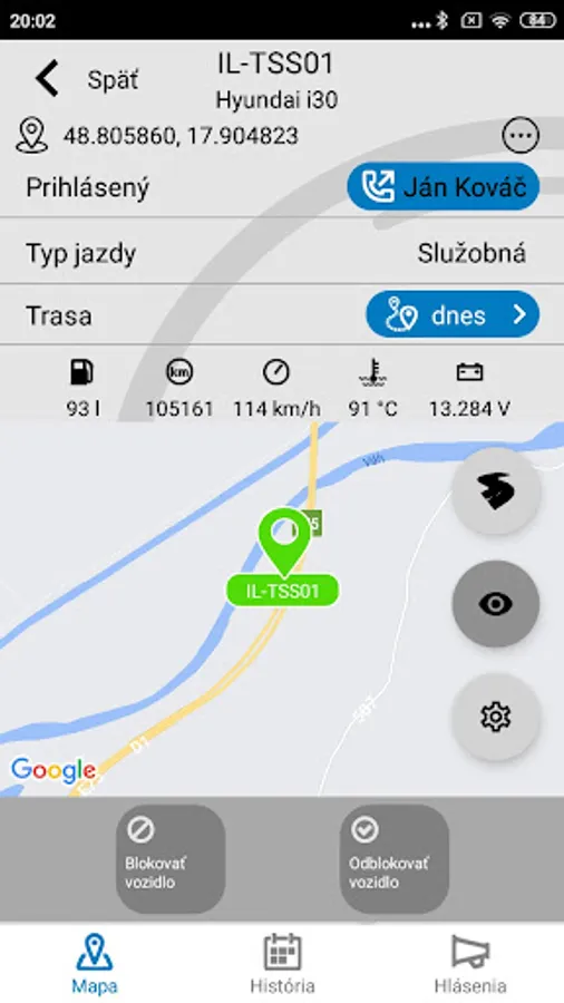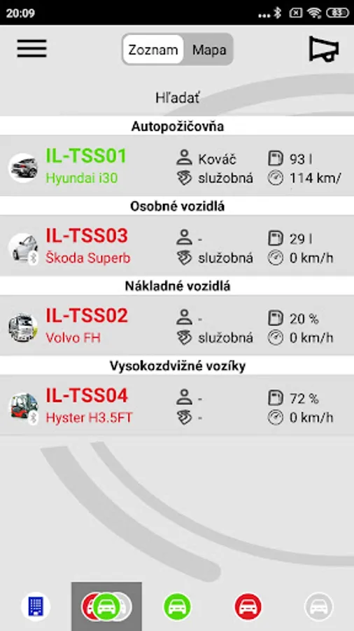- Detailed status of the vehicle and monitored quantities with location on the map.