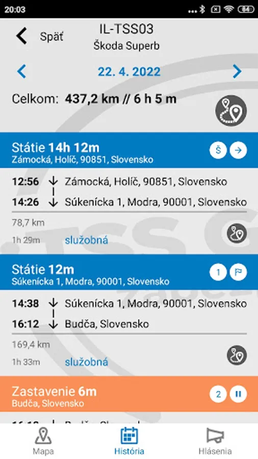 - History of journeys and basic modifications of journeys (change of journey type private/business, purpose of journey and others).