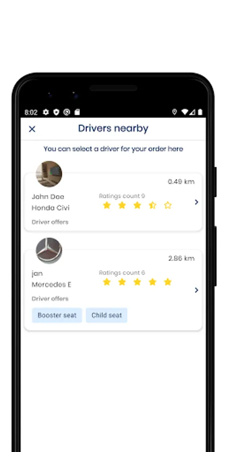 - select specific driver from list of nearby taxi drivers