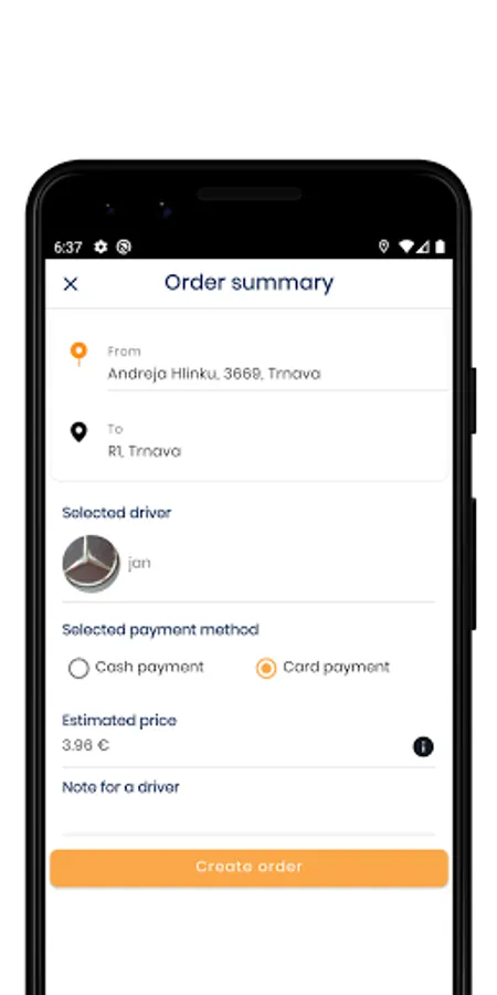 - contact customer by text message for example in case of delay or when arrived to pick up location