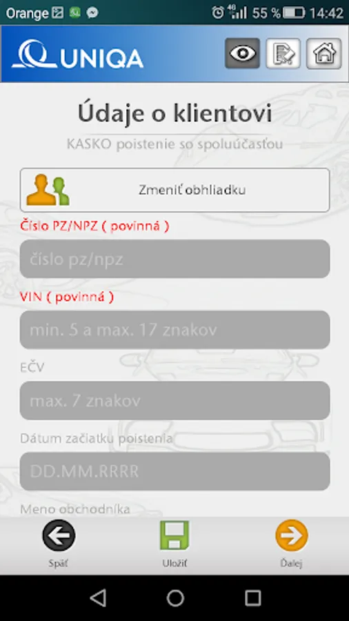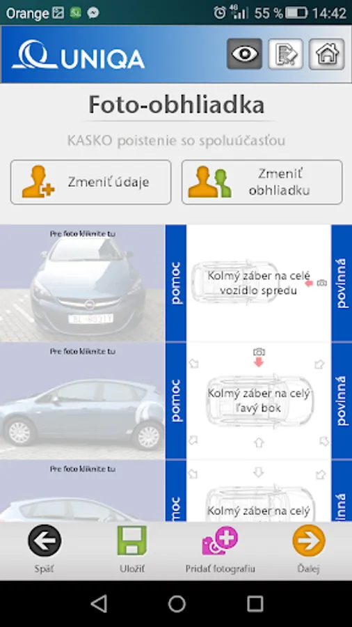 UNIQA insurance application for photo documentation of motor vehicles and property before taking out insurance