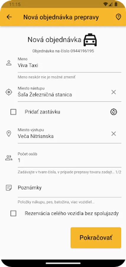 Through our new application, you can conveniently order a taxi from anywhere and at any time. Use the option of creating pre-orders or tracking the driver's location. When traveling by train, conveniently choose your train from the list of which arrival and departure we will adjust. From now on, you have the option of choosing the mode of transport, whether you want to travel alone or if you don't mind shared rides. Manage the history or ratings of your orders with just a few clicks. Through the notification, we will notify you in advance of the price and the time of the driver's arrival at your boarding point. In the details of the order, you will see the brand and registration number of the vehicle for your better orientation among our vehicles. And all this will continue to improve and develop!