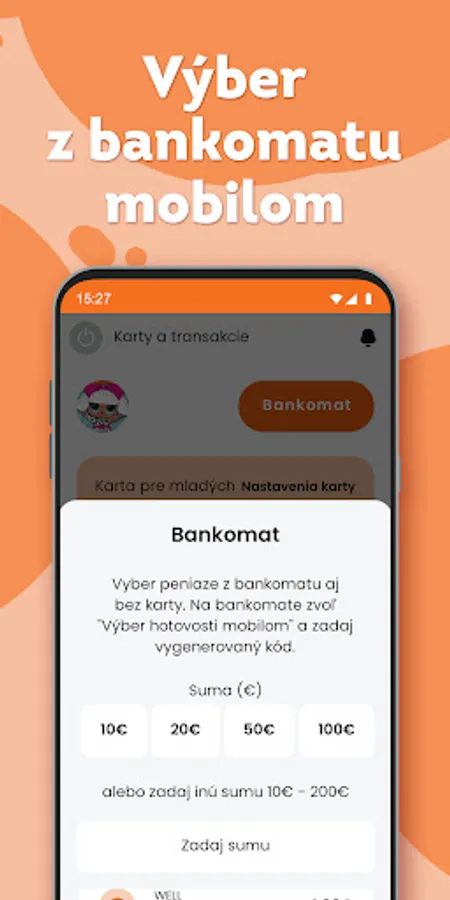 - Withdrawal from VÚB ATMs via mobile phone – easily and without card, by entering a generated code into the ATM