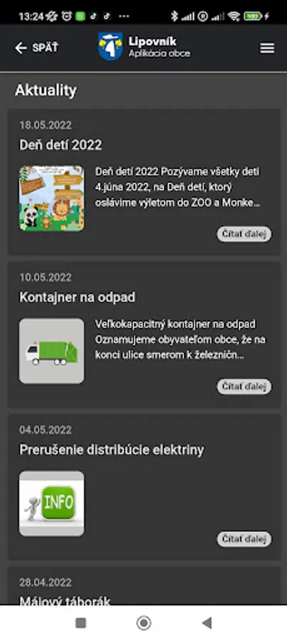 In addition, the application also allows the addition of modules. Whether it is news about what is happening in the village or the carriage schedule, you will also find important numbers in it in case you would like to contact someone from the village. There must also be a calendar of events and all online news.