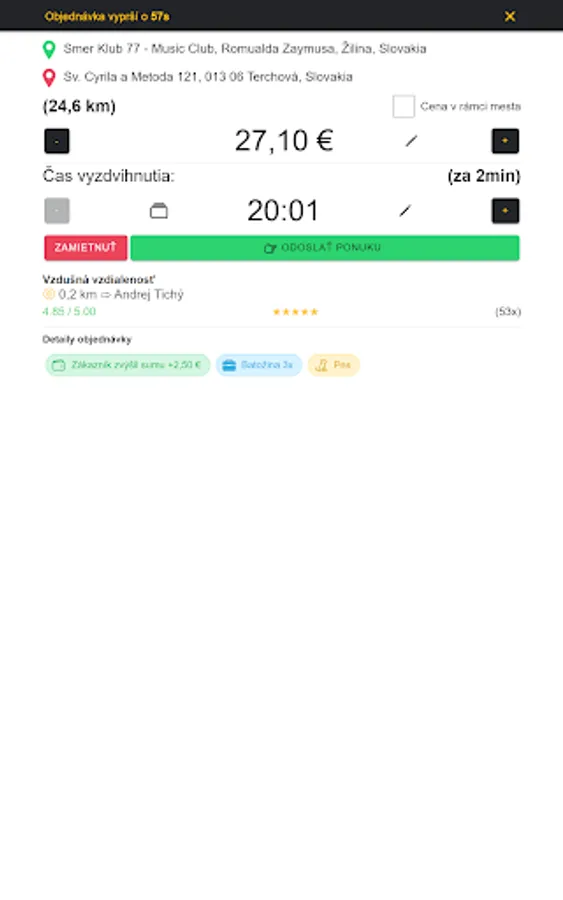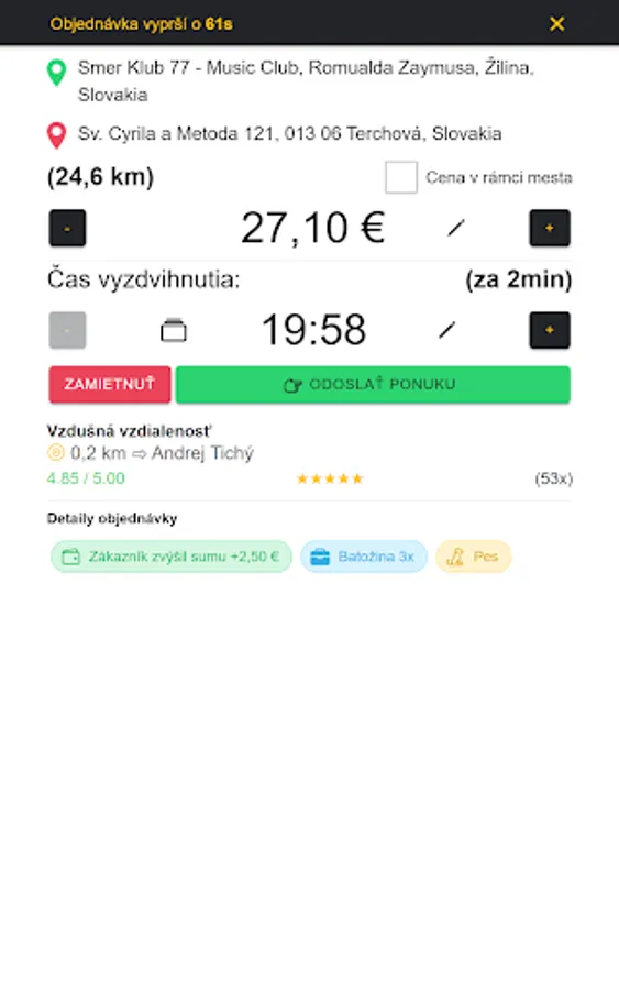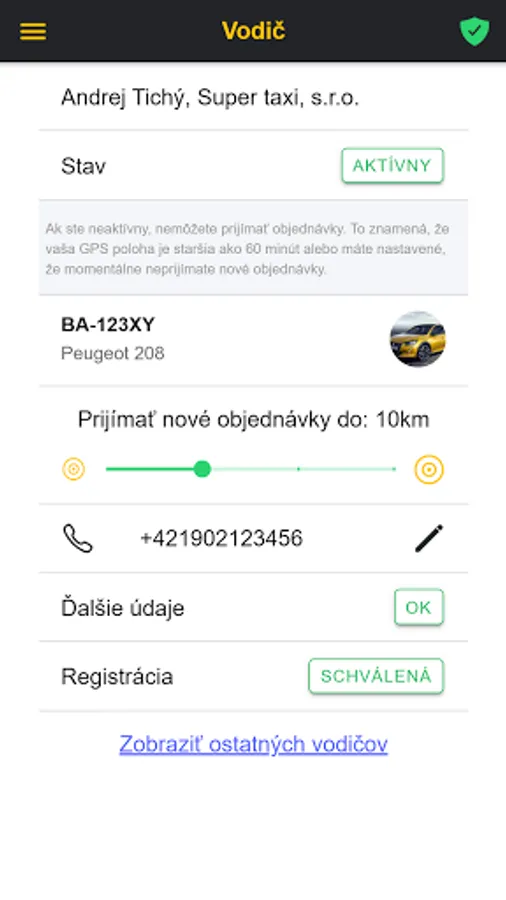-possibility to choose the range of delivered orders (5km, 10km, 15km, 20km)