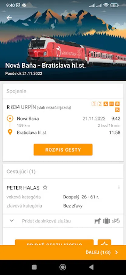 Mobile application of the Slovakian Railway Company, the national carrier, for quick and easy purchase of travel documents, seat reservations, search for connections and available information about trains operated by the Slovakian Railway Company.