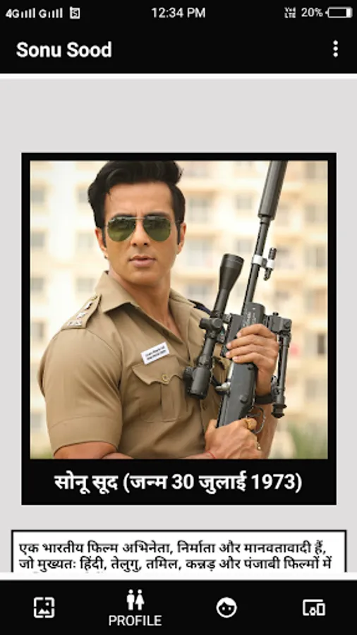 This App contains so many images of sonu sood and also contains details about sonu sood work and profile