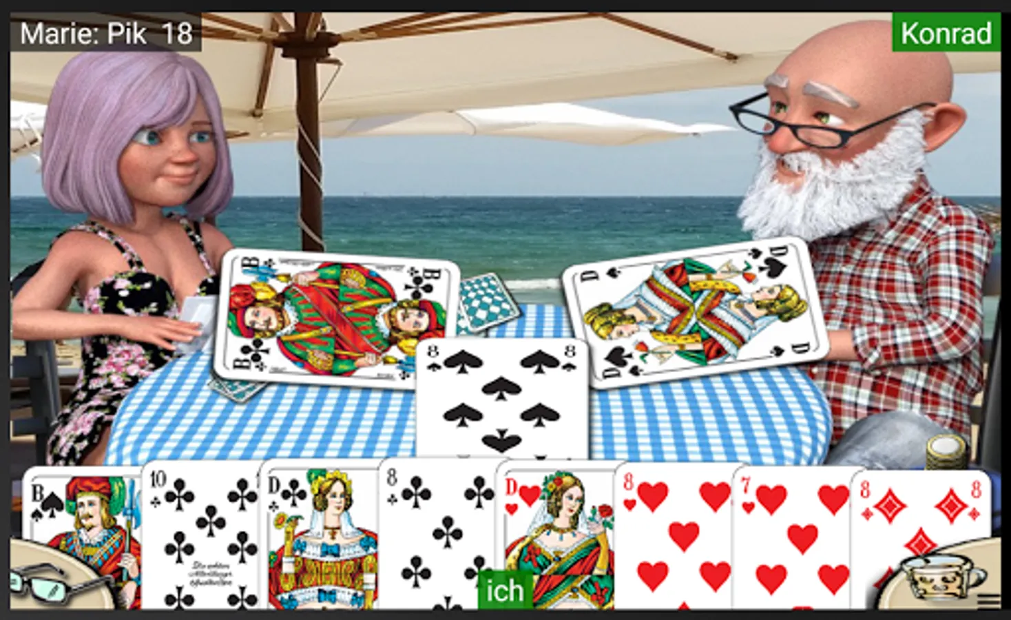 Skat, the classic card game! Play it now and learn Skat on the free app with beautiful voice output just like at the regulars' table.