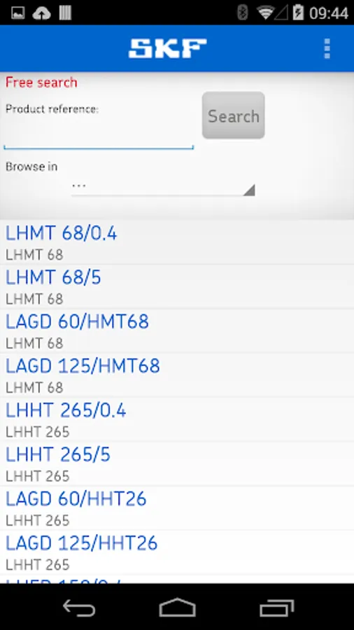 SKF PTP Catalogue Screenshots