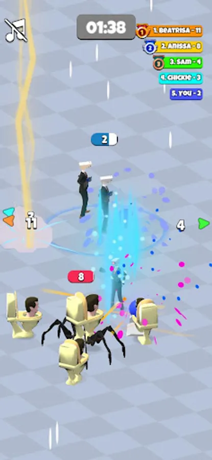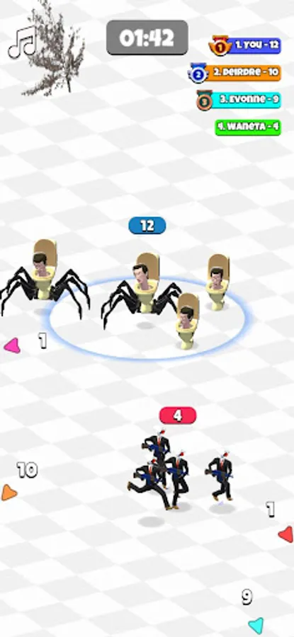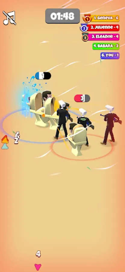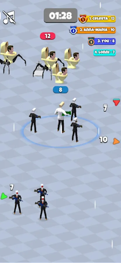 Take part in strategic actions and prove your positions by defending your territory from enemy toilets or cameras.