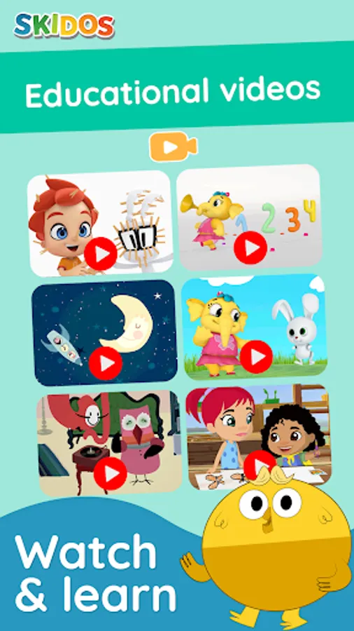 With the newer version of the game, toddlers can now practice tracing letters and alphabets in the SKIDOS learning games. There is the option to watch creative learning videos for kids to spend their time watching something productive and learning through educational videos in the fun toddler game itself.