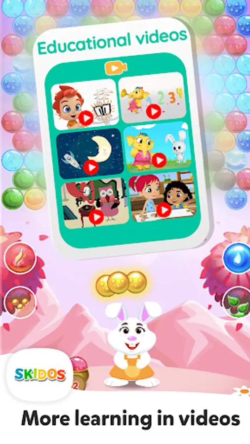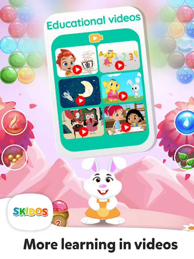 SKIDOS Bubble Shooting game for kids is one of the games for kids which perform as an educational app for kids and provide game based learning at the same time. Learning math and letter tracing becomes easier with these Bubble shooter games for kids. The bubble breaker game lets your kids have fun and learn math enjoyably. You can also watch learning and educational videos in the game. With SKIDOS Pass your kids can play 5 year old games, 6 year old games, seven year old games, eight year old games, 9 year old games, 10 year old games, 11 year old games, etc.