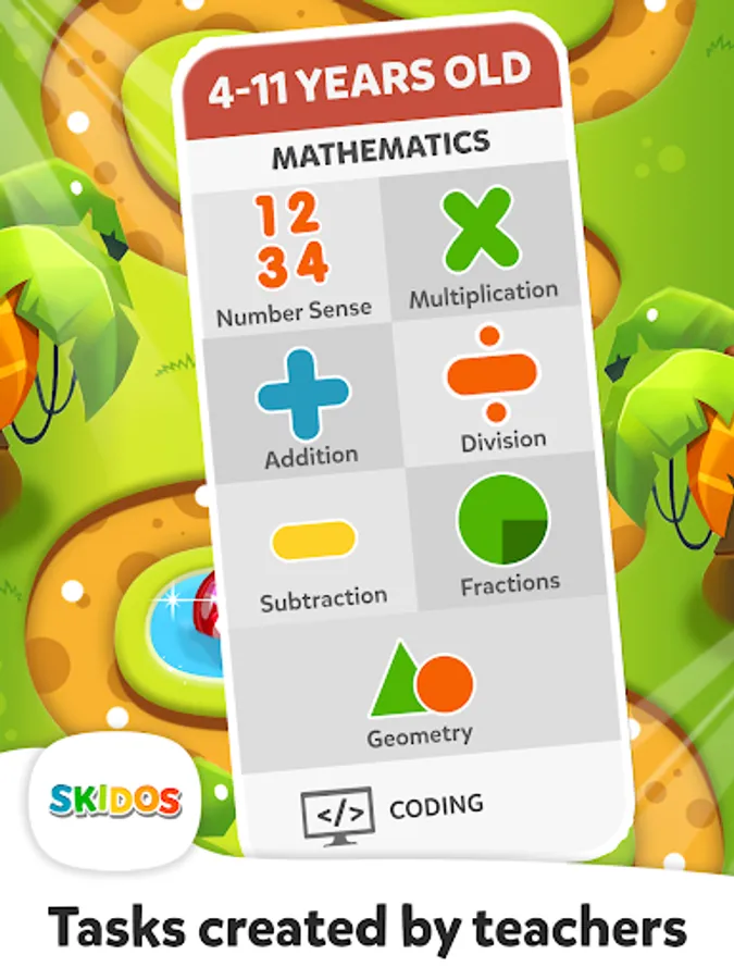 Your child’s learning journey with SKIDOS brought them some extra math skills. Learning with our fun SKIDOS math games for kids is not boring at all.