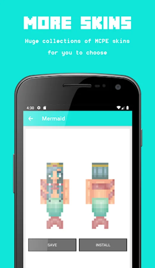 - Whether you want to "SAVE" a skin to your smartphone or tablet for later use or share to your friends, or "INSTALL" a skin directly to a Minecraft game. Everything can be done in seconds!