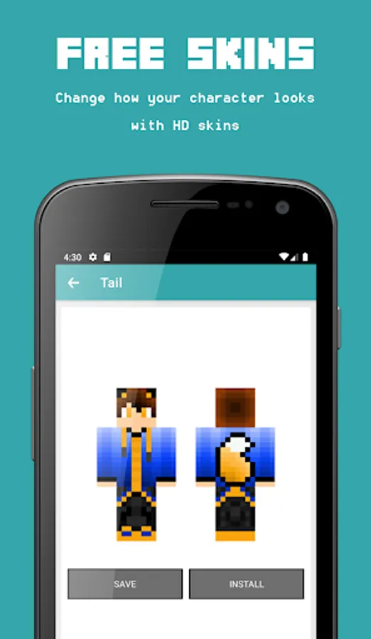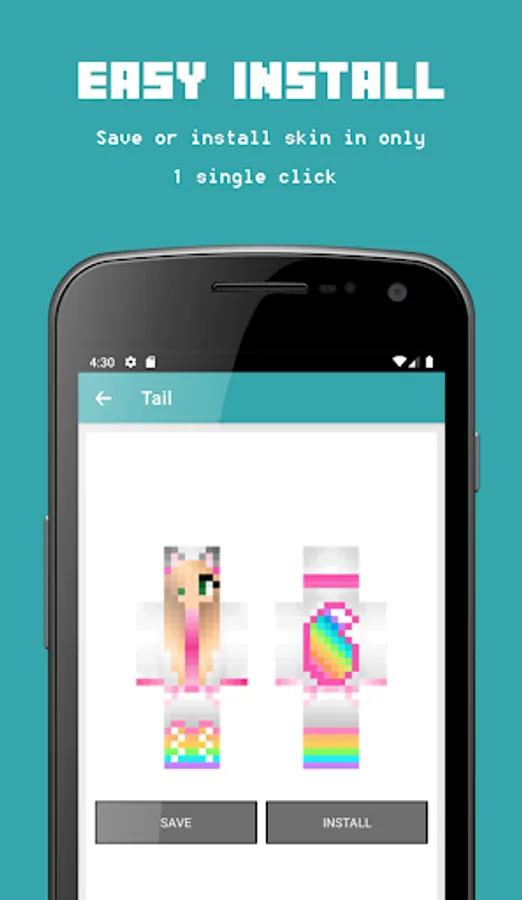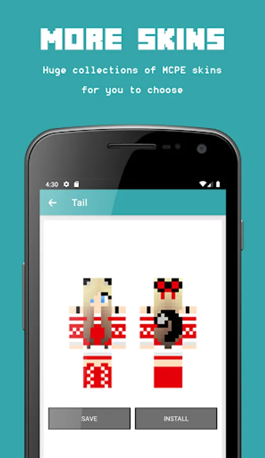 - Whether you want to "SAVE" a skin to your smartphone or tablet for later use or share to your friends, or "INSTALL" a skin directly to a Minecraft game. Everything can be done in seconds!