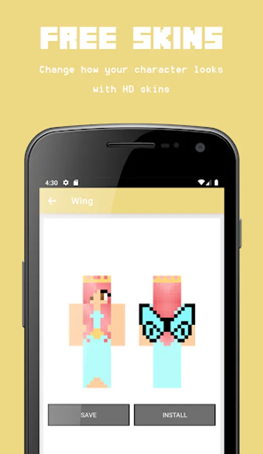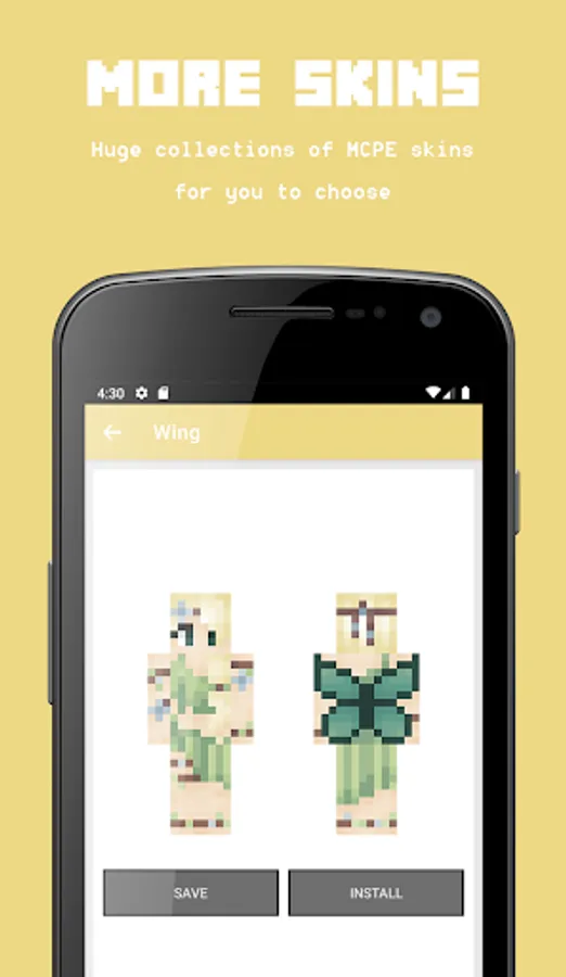 - Whether you want to "SAVE" a skin to your smartphone or tablet for later use or share to your friends, or "INSTALL" a skin directly to a Minecraft game. Everything can be done in seconds!