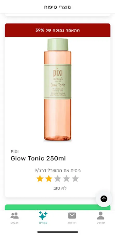 תוכל לדרג מוצרים שניסית, ולהתייעץ עם הSkinTwin שלך.