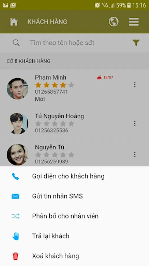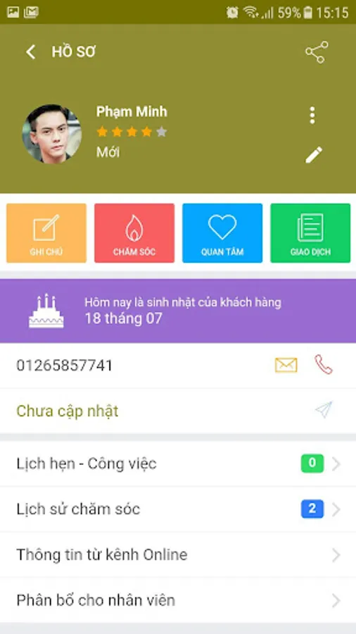 List management, profile details and needs of customers. Classification, evaluation of potential customers. Update status of customer care. Customers receive directly from the company through the application