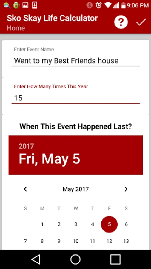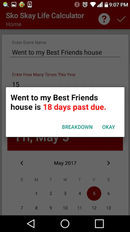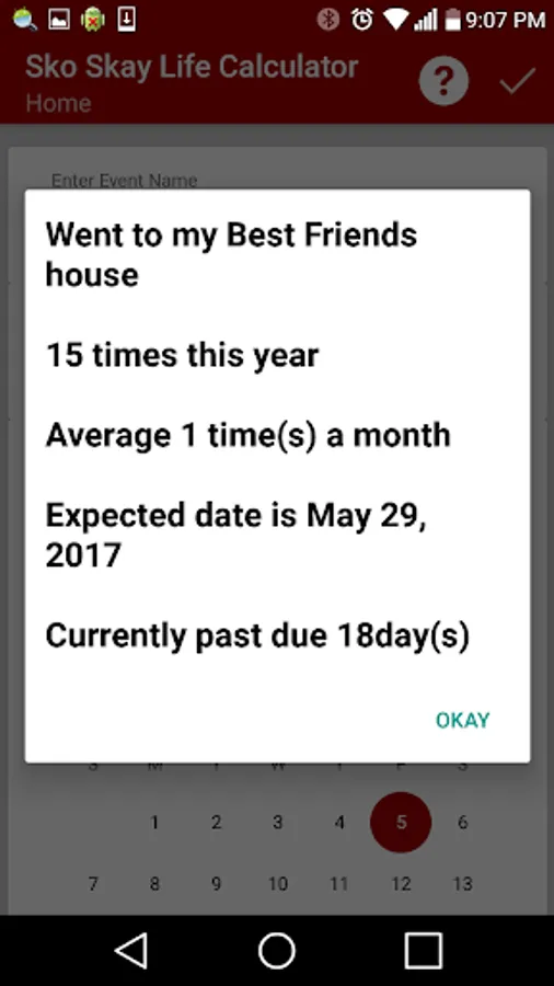 All you need to do is enter the details into the calculator / calendar and Sko Skay will do the calculations for you, telling you when the event is due or if it’s past due. It’s a brand new kind of calendar!
