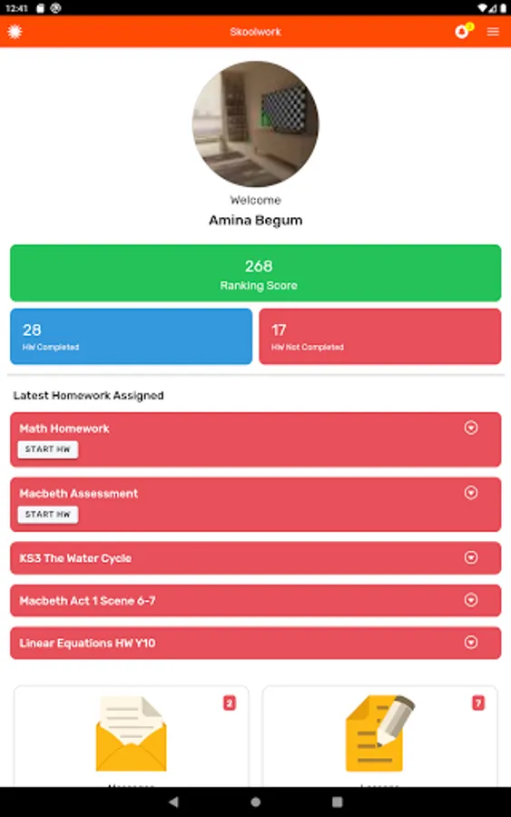 - View latest homework assigned in school