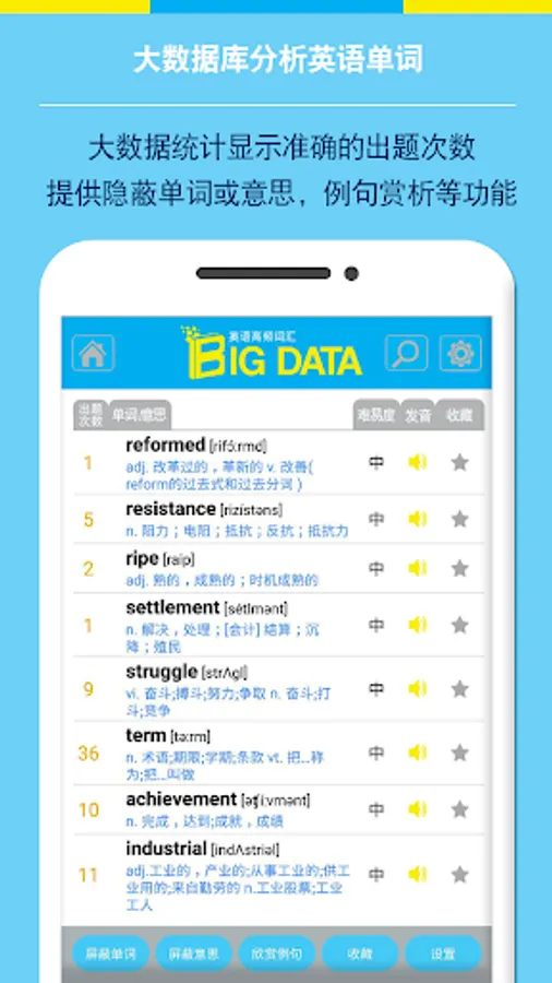 -单词最重要的信息就是出题次数和单词难易程度。大家可以根据自己