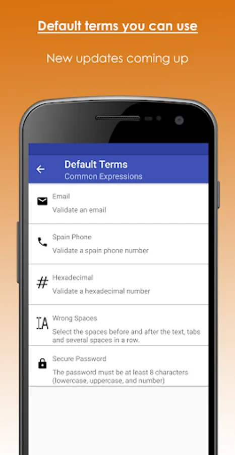 *This is the free version. Ads have been deleted when saving regular expressions. There is a paid version that adds some non-essential functionality (In Default Terms submenu, you can use regular expressions by default)