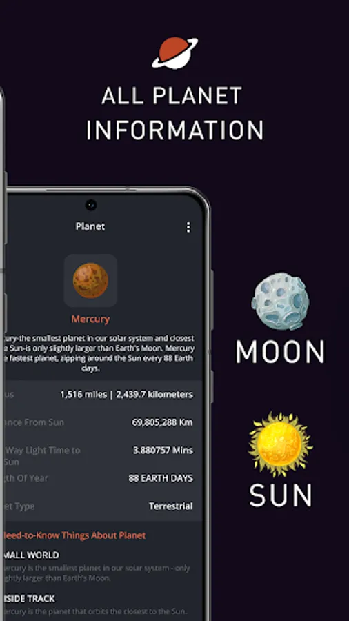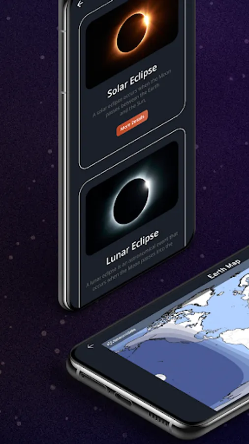 Sky Observatory or Sky Observation app does not only include a live, zoom-able sky map which tells you what sky object you are looking at but provides you with loads of detailed extra information on stars, planets, deep sky objects, meteor showers, asteroids, lunar and solar eclipses as well as detailed hemispheres of all included sky objects and an interactive top-down view of the Solar System. All that in just one app!