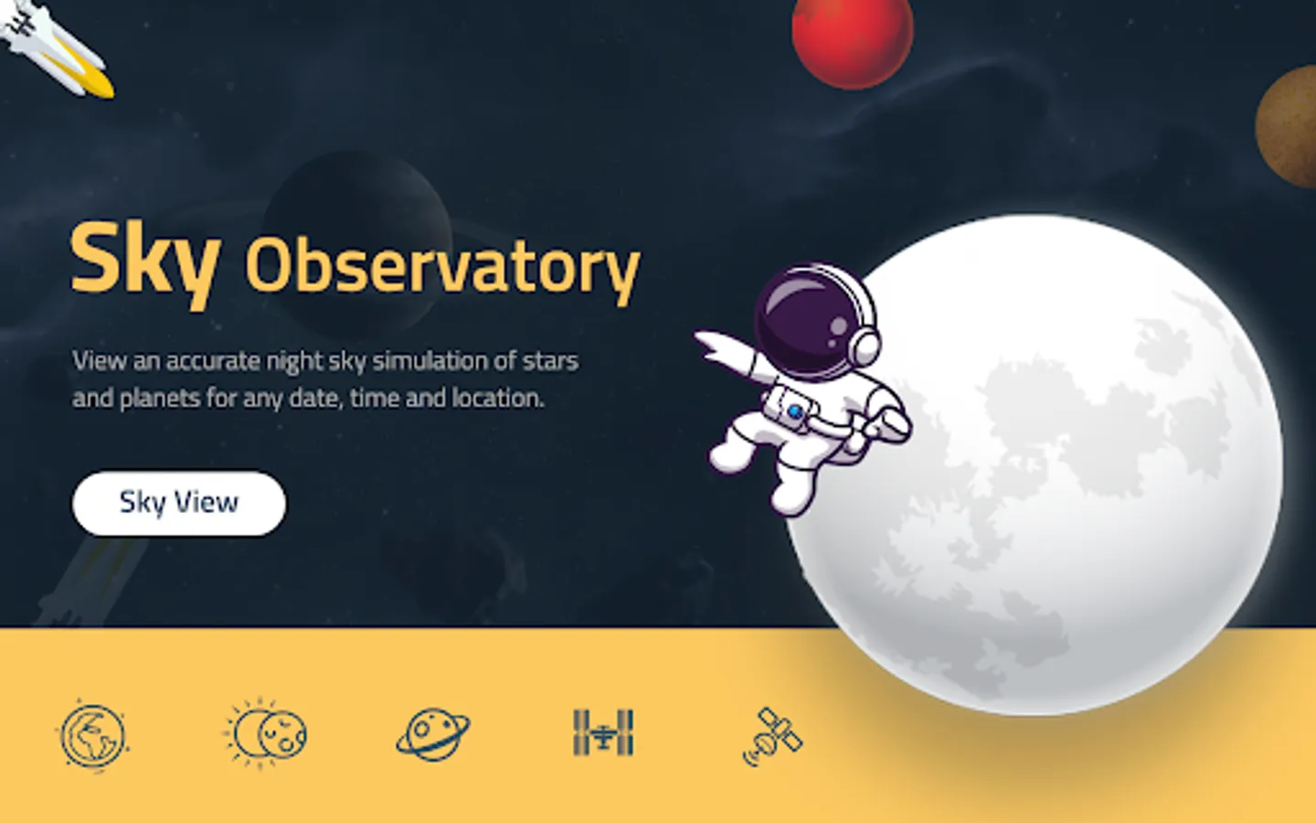 Sky Observatory with sky view & star map is a planetarium app that shows exactly what you see when you look up in the sky or at the stars. Mobile Observatory is the perfect tool for anybody interested in the sky's wonders, from the occasional sky gazer to the passionate amateur astronomer.