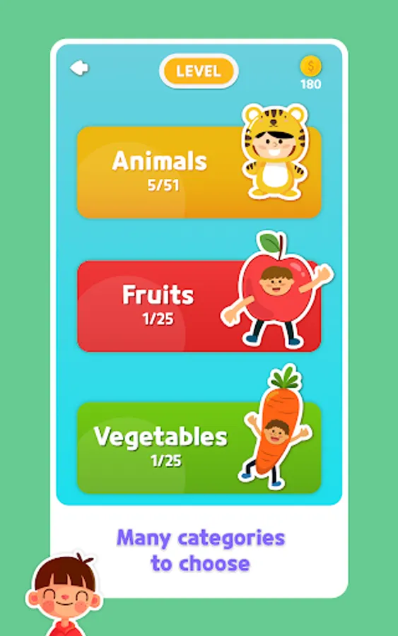 It helps you to train your mind and enjoy the joyful of game. You need to identify the picture by its description and Guess the name. For example, Guess the name of Birds, Fruits, Vehicles.