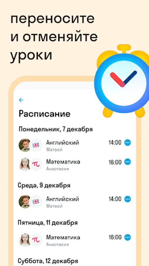 Assign and reschedule lessons in all subjects - 24/7 chat will help you.