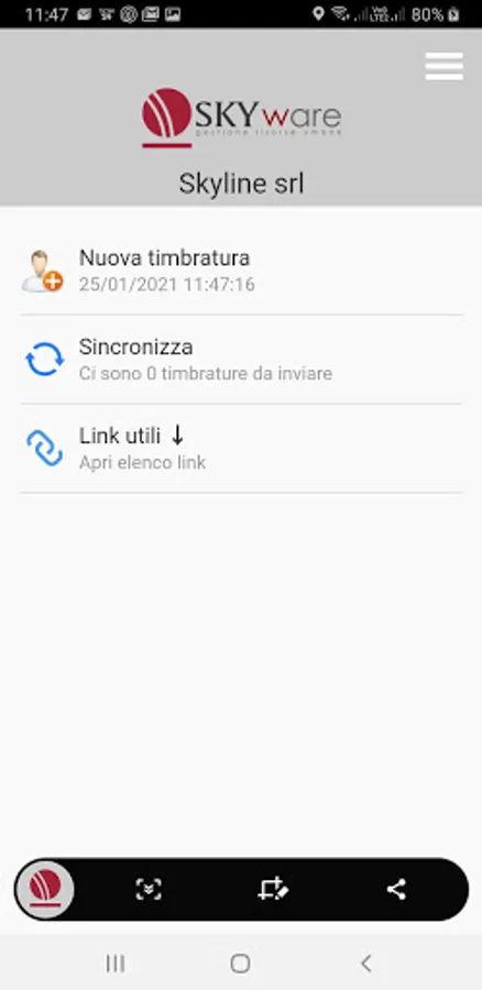 The app will be installed on mobile devices which will be given to the different team leaders. The employee who has to stamp must present himself to the foreman with his badge, on which the identification QRcode is printed. The foreman will activate the App and following a simple procedure will acquire the stamp of the employee. Once a certain number of stamps have been collected, the foreman will be able to send the stamps.