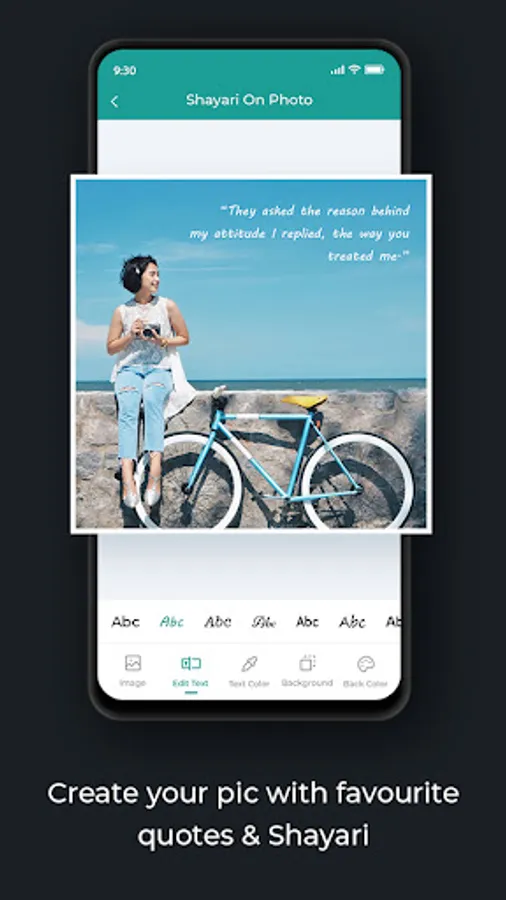 - You can add text with different types of stylish fonts family for different kind of shayari or quotes & occasions. You can also change color to font. You can also change size, color and alignment of your text. You can also rotate it.