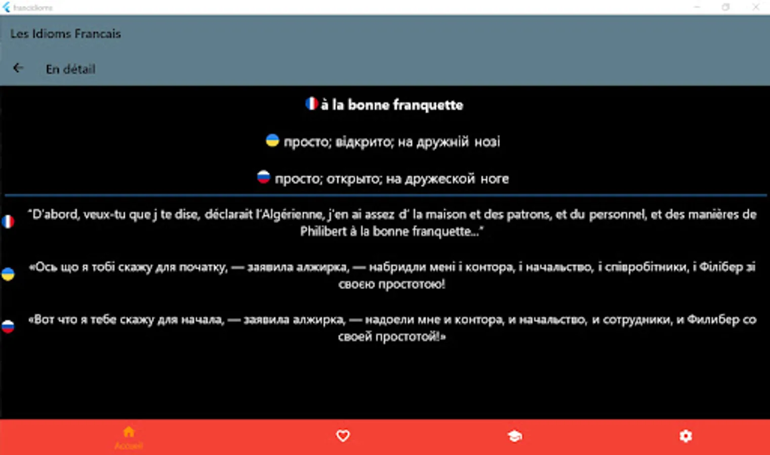 - You can listen to any idiom with the help of Text-to-Speech engine.