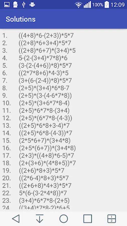 App only looks for integer solutions but an intermediate point in the solution can be real, example app will find (7/2+10)*6=81.