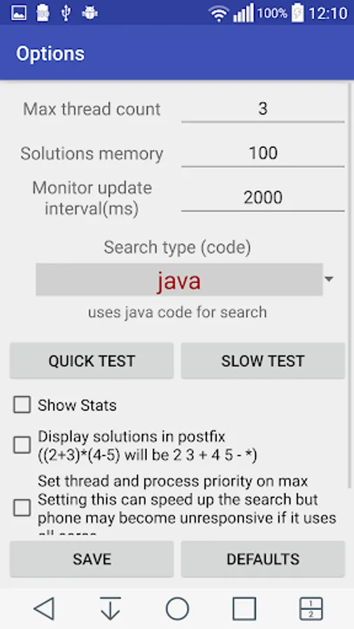 App has several codepaths: native C or optimizations for special cases like only integer division or code optimized for search with one repeating number.