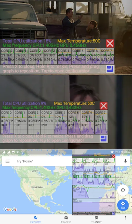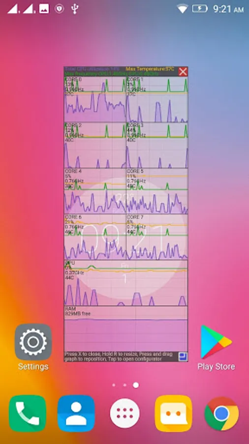 This app creates transparent graph on top of everything, this graph can display CPU GPU or RAM information.