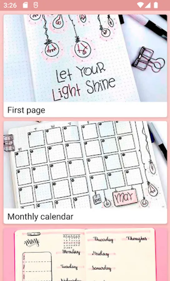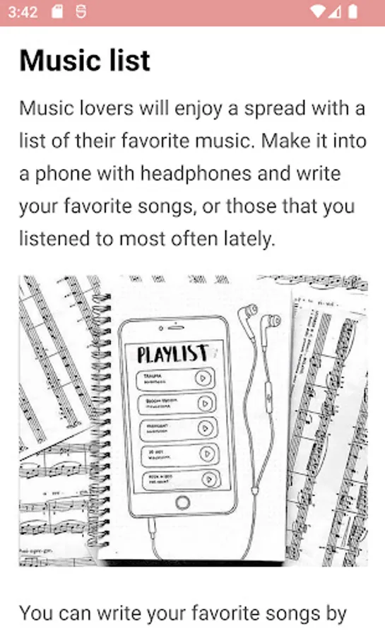 You will learn how to make a mood tracker, ideas for a diary, how to dilute pages of text with doodles, frames and dividers, how to beautifully design various lists, share original ideas for spreads and much more.